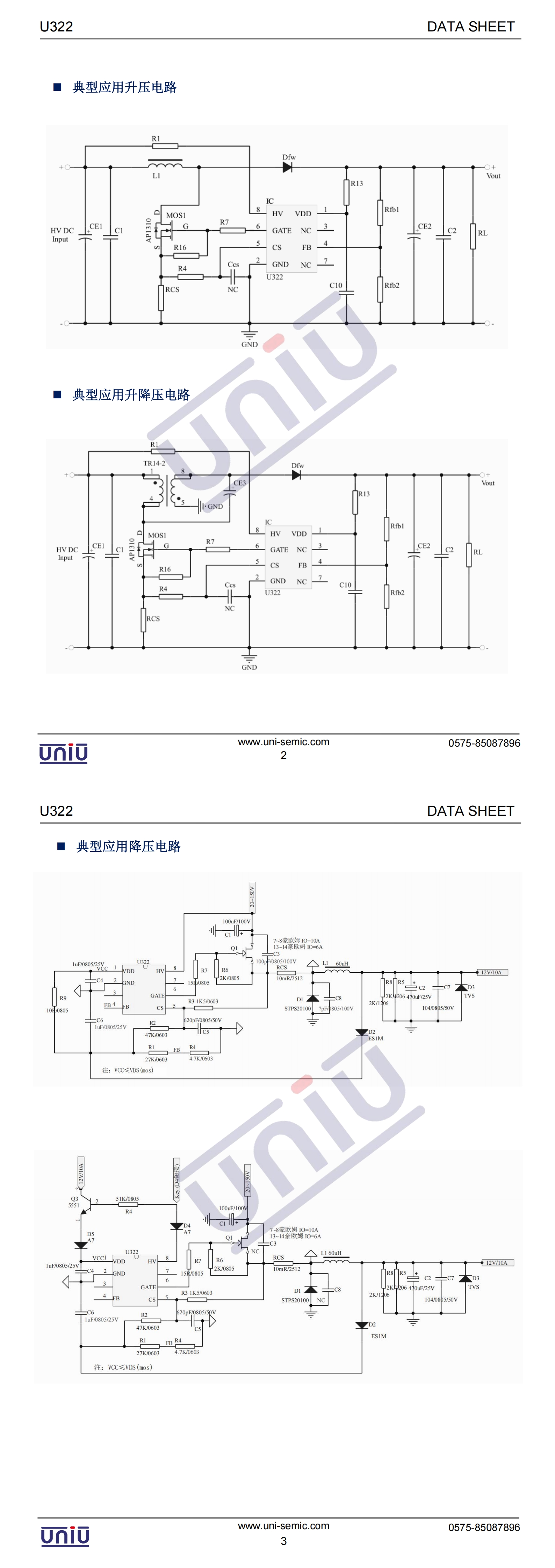 產品描述U323是一款高性能低成本PWM控制功率器,適用于離線式小功率升壓、降壓和升降壓型應用場合,外圍電路簡單、器件個數少。同時產品內置高耐壓MOSFET可提高系統浪涌耐受力。與傳統的PWM控制器不同,U323內部無固定時鐘驅動MOSFET,系統開關頻率隨負載(輕載、重載)變化可實現自動調節。同時芯片采用了多模式PWM控制技術,有效簡化了外圍電路設計,提升線性調整率和負載調整率并消除系統工作中的可聞噪音。此外,芯片內部峰值電流檢測閾值可跟隨實際負載情況自動調節,可以有效降低空載情況下的待機功耗。U323集成有完備的帶自恢復功能的保護功能:VDD欠壓保護、逐周期電流限制、輸出過壓保護、過熱保護、過載保護和VDD過壓保護等。