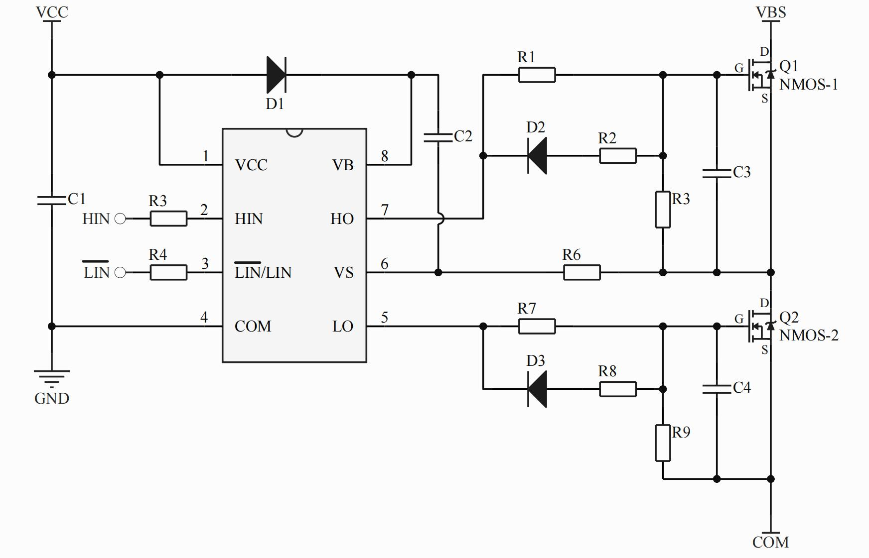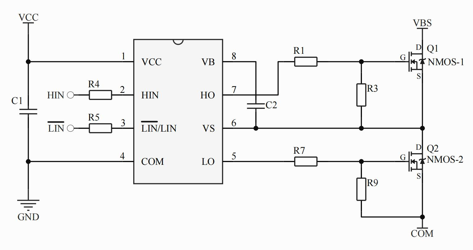 •主要特點: 集成自舉二極管(1);高端懸浮自舉設(shè)計 ; 最高工作電壓可達+300V ;負瞬態(tài)電壓承受能力;支持柵極驅(qū)動電壓從9 到 20V;VCC /VBS欠壓保護 (UVLO) ;兼容3.3V, 5V輸入邏輯 ; 內(nèi)置直通防止和死區(qū)時間 ; 芯片傳輸延時特性